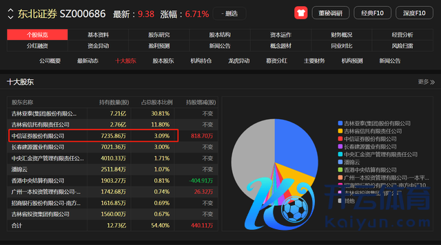 中信证券合手有东北证券7235万股,市值5.93亿。