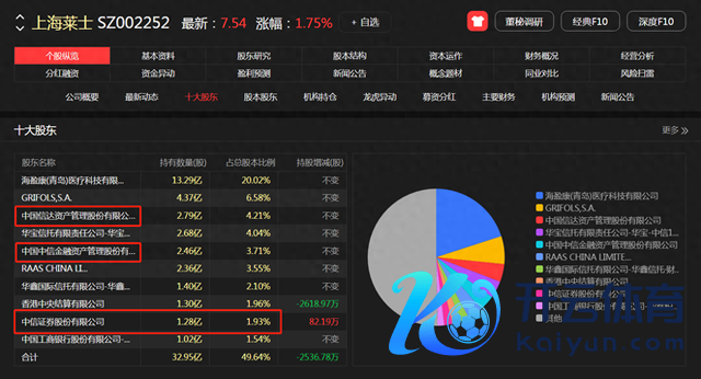 中信证券合手有上海莱士1.28万股,市值10.12亿,占比1.93%,位列第九大推动。十大历程中咱们还不错看到两大钞票处置中心,分辩位列第三和第五大推动。