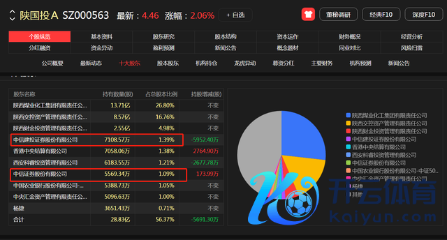 中信证券和中信中信建投重仓陕国投,分辩位列第四和第七大推动,所有这个词合手有1.26万股,市值4.74亿。