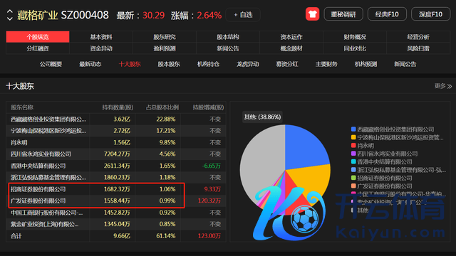招商证券和广发证券重仓藏格矿业,分辩位列第七和第八大推动,所有这个词合手有3240万股,市值9.32亿。