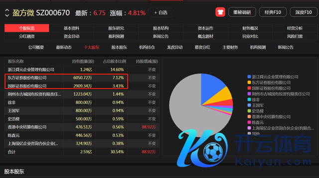 东方证券和国新证券重仓盈方微,分辩位列第二和第三大推动,所有这个词合手有8960万股,市值5.19亿。我就说盈方微重组失败以后怎么没受到任何影响呢?