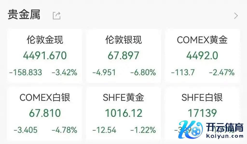 现货白银跌 6.8%,报 67.897 好意思元 / 盎司,本周累计下降超 15%;COMEX 白银期货跌 4.78%,报 67.810 好意思元 / 盎司,本周累跌超 16%。