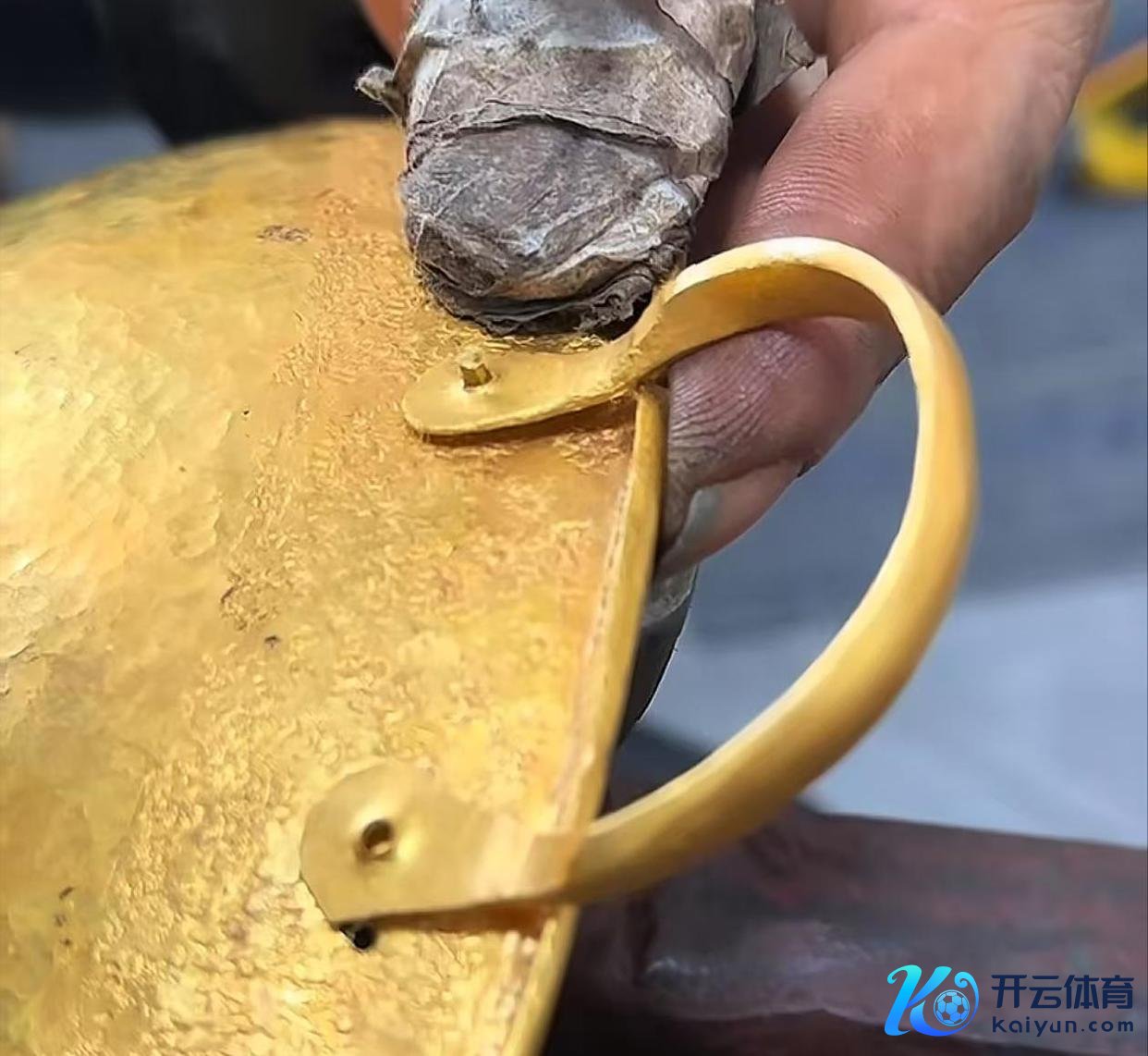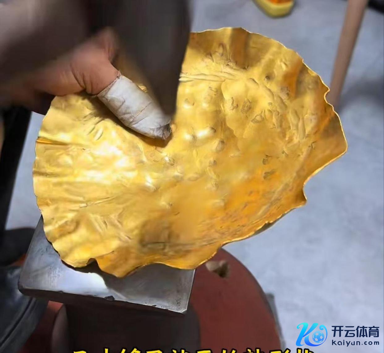 师父们用小榔头敲打着这块金子,逐步地把它变成一个锅的表情,这个经由像是在打造一件艺术品,每一下敲打齐要恰到公正,不成用劲过猛也不成太轻。